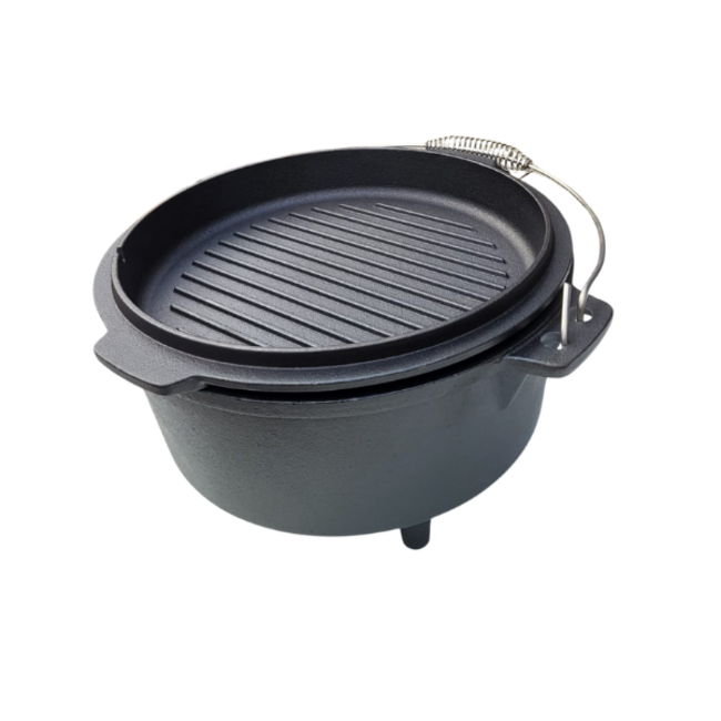 Schwerer Dutch Oven mit 5 Litern Fassungsvermögen – ideal für Eintöpfe, Brot oder Fleischgerichte über offenem Feuer. Lesen Sie mehr.